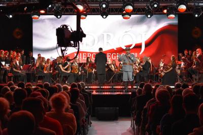 Po zakończeniu obchodów na krynickim deptaku w sali balowej Starego Domu Zdrojowego rozpoczął się koncert pieśni patriotycznych w wykonaniu Zespół Kryniccy Seniorzy.