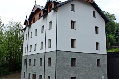 Niszczejący do niedawna budynek w ciągu zaledwie kilku miesięcy zmienił się nie do poznania. Dzięki wykonaniu warstwy termoizolacyjnej ścian zewnętrznych, wymianie pokrycia dachowego, zmianie rozmieszczenia i wymiarów niektórych otworów okiennych, zastosowaniu nowych materiałów wykończeniowych oraz odpowiednim doborze kolorystyki, znacznie podniosła się atrakcyjność wizualna tego obiektu i jego otoczenia.