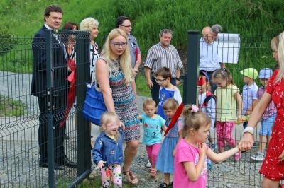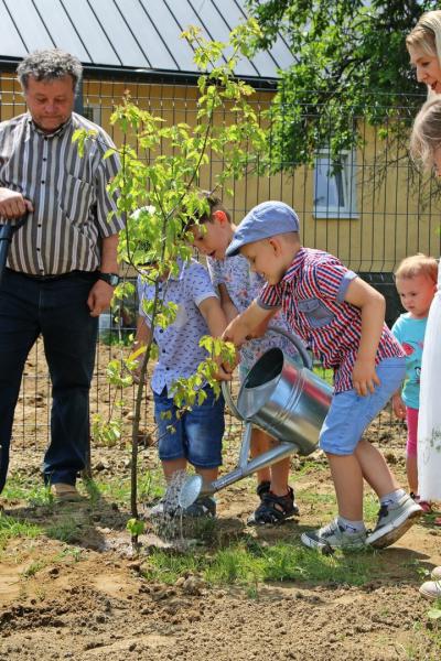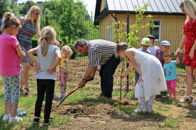 Po oficjalnym przecięciu wstęgi symbolicznie dokonano zasadzenia drzew. Teren placu zabaw otacza ogrodzenie a przy placu powstał również parking na kilka samochodów.