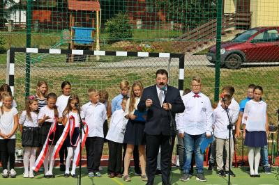 Szkoła w Mochnaczce Niżnej, która jest ważnym ośrodkiem kształcenia i wychowania młodego pokolenia będzie mogła od dzisiaj korzystać z nowoczesnego i przede wszystkim bezpiecznego boiska sportowego. Na początku września oddaliśmy do użytku oddział przedszkolny w Polanach, dziś otwieramy boisko w Mochnaczce Niżnej, to dowód jak dużą wagę przykładamy do rozwoju dzieci w naszych sołectwach.