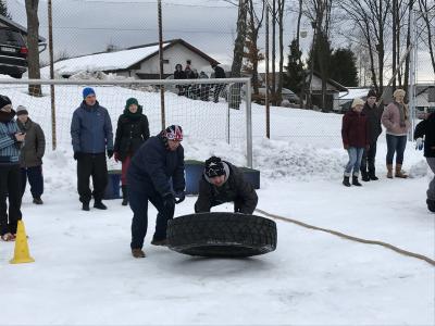 Na boisku sportowym przy Środowiskowym Domu Samopomocy w Krynicy-Zdroju odbyła się III Zimowa Spartakiada Osób Niepełnosprawnych w której wzięło udział prawie 80 uczestników niepełnosprawnych z 4 ośrodków: WTZ Nadzieja Nowy Sącz, ŚDS Nowy Sącz, POW Muszyna i gospodarze zawodów ŚDS Krynica-Zdrój. Uczestnicy rywalizowali w 5 konkurencjach: bieg przez labirynt, toczenie opony, rzucanie woreczkiem do celu, przeciąganie na sankach oraz przeciąganie liny. Najlepsi w drużynowej rywalizacji okazali się podopieczni ŚDS z Nowego Sącza, którzy po raz pierwszy gościli na zawodach – serdeczne gratulacje! Na koniec każdy ośrodek musiał rozwiązać łamigłówki, które doprowadzały do zakopanego pod śniegiem skarbu. Gościem specjalnym spartakiady był burmistrz Krynicy-Zdroju Piotr Ryba, który wręczał piękne puchary i medale w formie śnieżynki dla wszystkich zawodników. Ponadto główną nagrodą dla każdego ośrodka był bon na kręgle. Podczas zawodów nie zabrakło ciepłego napoju oraz poczęstunku, tak aby zwłaszcza goście z Nowego Sącza nieprzyzwyczajeni do zimy i mrozów mogli komfortowo brać udział w zawodach J. Po zakończonych konkurencjach, rozdaniu nagród i odnalezieniu skarbów wszyscy przenieśli się do budynku aby się ogrzać, wymienić na gorąco swoimi spostrzeżeniami i emocjami po zawodach, ale przede wszystkim aby zjeść smaczny obiad. Organizatorem zawodów był ŚDS z Krynicy-Zdroju przy współpracy z MOSiR oraz Centrum Kultury. Serdecznie dziękujemy wszystkim, którzy przyczynili się do tego by te zawody mogły się odbyć, ale przede wszystkim uczestnikom, którzy świetnie się bawili i pokazali prawdziwego ducha rywalizacji. Widzimy się za rok!