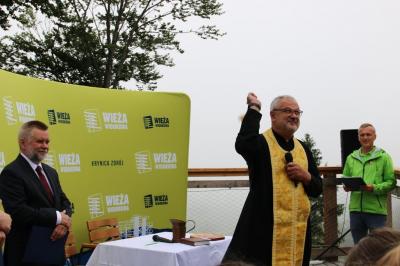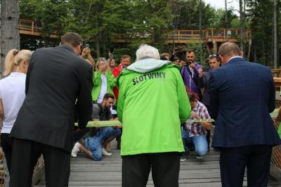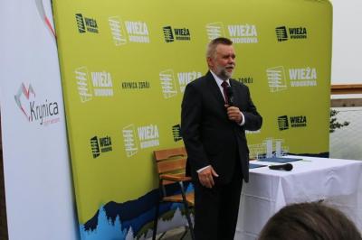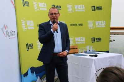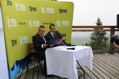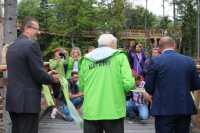 Dziś Wieża widokowa Krynica Zdrój i Moja Krynica uroczyście zainaugurowały działalność ścieżki widokowej w koronach drzew oraz współpracę dotyczącą wspólnych działań promocyjnych. List intencyjny pomiędzy spółką Słotwiny Arena a Gminą Krynicą-Zdrój podpisali Członek Zarządu Maciej Szymański oraz Burmistrz Krynicy-Zdroju Piotr Ryba, w obecności pomysłodawcy i właściciela inwestycji Sławomira Rusinka, posła Marka Sowy a także przedstawicieli krynickiej rady miejskiej, duchowieństwa oraz reprezentantów firm i przedsiębiorstw i licznie już odwiedzających wieżę turystów.
