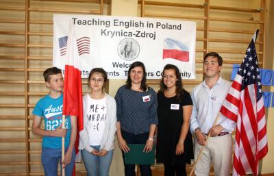Celem programu Teaching English in Poland jest rozwinięcie u polskich uczniów umiejętności konwersacji w języku angielskim, nabranie pewności siebie w rozmawianiu w języku obcym, zapoznanie uczniów z różnymi aspektami życia i kultury amerykańskiej. Warsztaty realizowane są w Publicznym Gimnazjum w Krynicy-Zdroju w terminie 4-15 lipca. W zajęciach udział bierze 50 uczniów z klas 5 i 6 klas szkół podstawowych oraz uczniów gimnazjów z terenu Gminy Krynicy-Zdroju.