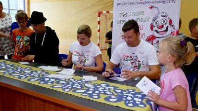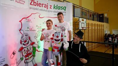 W przedstawieniu obfitującym w konkursy z wiedzy ekologicznej udział wzięli udział uczniowie szkoły i przedszkolaki, przedstawiciel operatora projektu - Magdalena Cholewa i Dyrektor Zespołu Obsługi Szkół i Przedszkoli - Grzegorz Jarecki. Ambasadorami projektu prowadzącymi ekologiczne „Zabawy z klasą” są: aktywna mama - Justyna Tomańska, wokalista - Mariusz Totoszko oraz Eko robot „Paluszek” stworzony przez Konrada Czarkowskiego „KONY-ego” (lalkarza medialnego, finalistę polskiej i brytyjskiej edycji „Mam Talent”). Po przedstawieniu odbyła się konferencja prasowa, podczas której omówiono założenia akcji. Wszystkie placówki oświatowe, które zalogują się na stronie www.zbierajzklasa.pl i przystąpią do projektu zbierając baterie i elektrośmieci, zbierają na swoim koncie punkty, a te z kolei wymieniają na cenne nagrody. Są nimi m.in. e-karty do sklepu empik.com. Ci, którzy zgromadzą największą ilość punktów do marca przyszłego roku będą mieli szansę wygrać wycieczki edukacyjne (m.in. camping na Słowenii od Vacansoleil, wyjazd do JuraParku w Bałtowie lub do Farmy Iluzji w Trojanowie). Wielki finał, połączony z koncertem gwiazd, z udziałem dzieci i młodzieży planowany jest na kwiecień 2017 r.