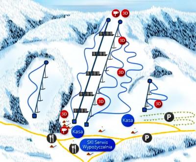 Szeroki i bezpieczny stok o długości 300 metrów sprzyja narciarstwu rodzinnemu oraz daje pełen komfort początkującym i średnio-zaawansowanym narciarzom. Wysoki poziom oferty stacji narciarskiej podkreśla dostęp do wypożyczalni i serwisu sprzętu narciarskiego, małej i przytulnej gastronomii wraz z miejscem odpoczynku oraz bogatej oferty szkoleń i kursów narciarskich.