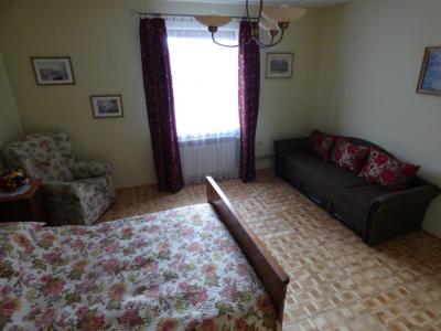Dwa oddzielne pokoje. Pokój „zielony”: łoże małżeńskie dwuosobowe. Pokój „czerwony”: łóżko/sofa dwuosobowa, sofa nierozkładana |