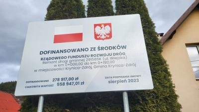 Nazwa zadania: „Remont drogi gminnej 291585K (ul. Wiejska) w km od 0+000,00 do km 0+192,00 w miejscowości Krynica-Zdrój, Gmina Krynica-Zdrój”